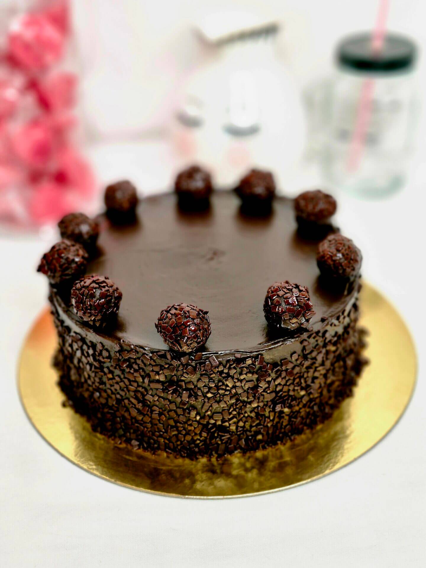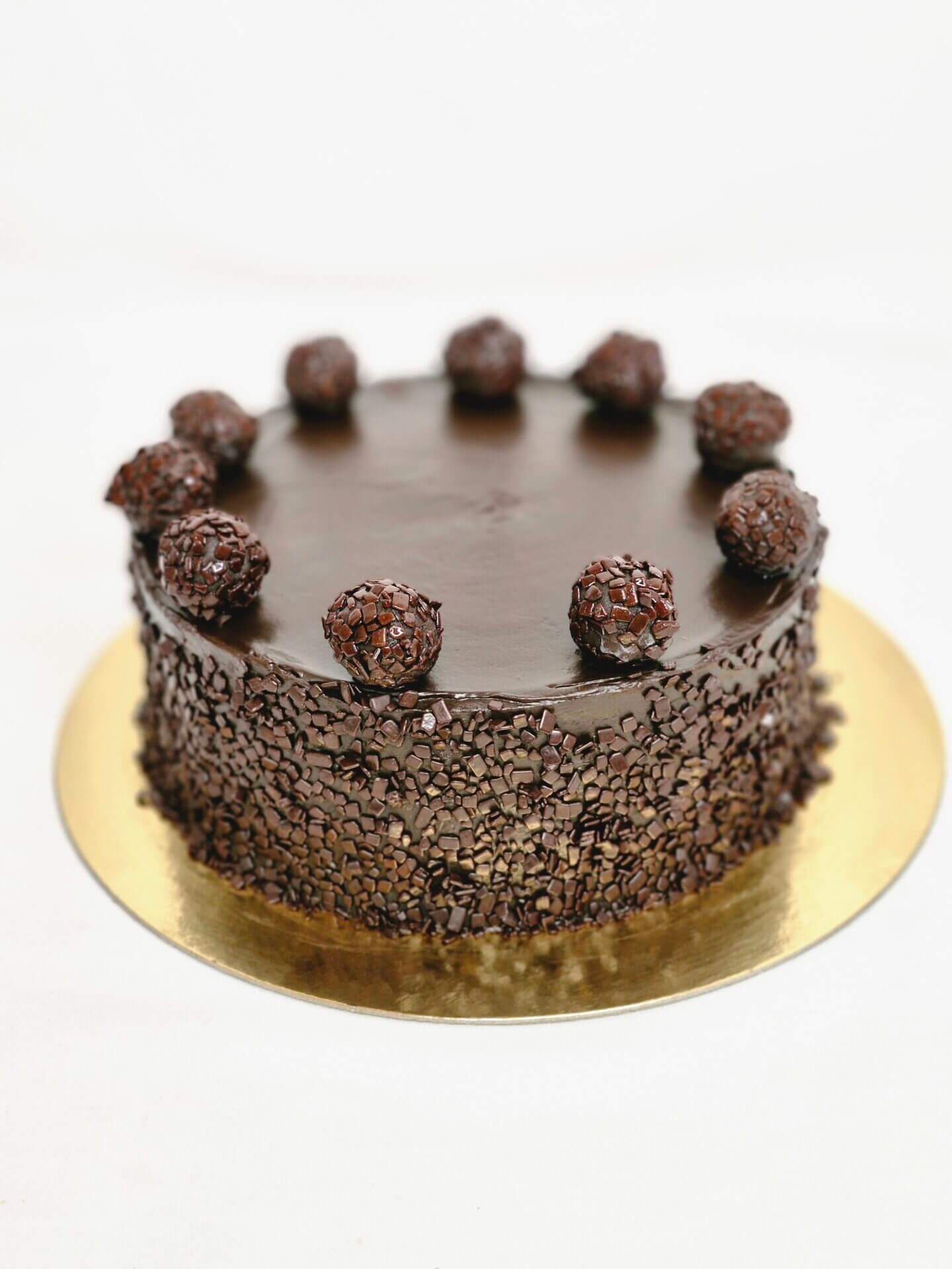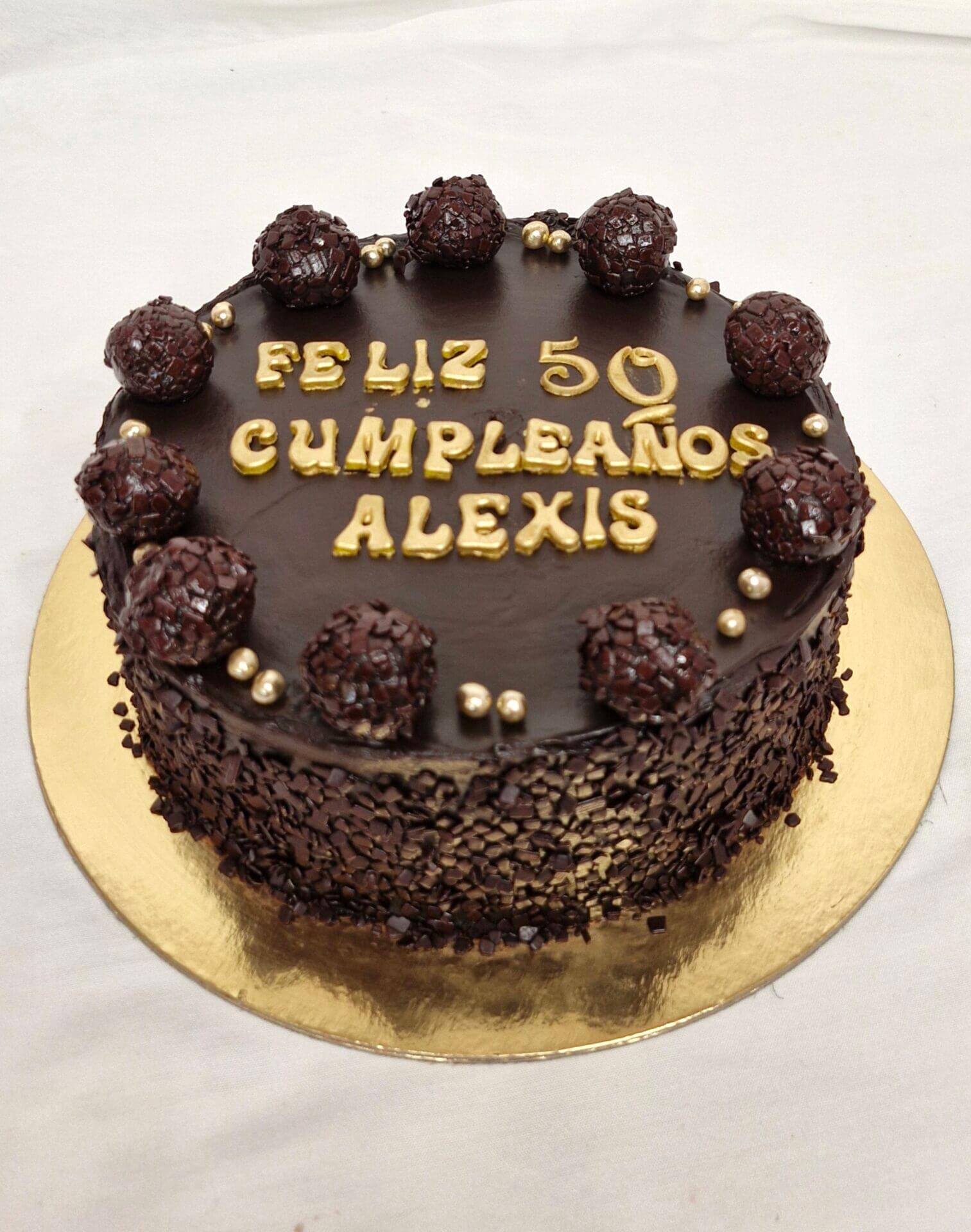 Decorada con mas crema especial y escama de chocolate negro.